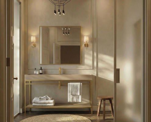 La Colección U6 redefine el concepto de baño integrado, combinando estructuras metálicas personalizables con la calidez de materiales nobles para crear estancias únicas y funcionales. Propuesta de encimera solid con poza configurable: grifo sobremesa, a pared, mayor o menor superficie de apoyo, etc