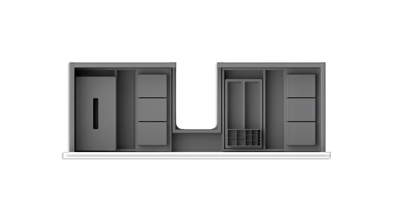 Teniendo en cuenta que en la U2 Collection tenemos 4 anchos de muebles, también en los cajones inferiores, disponemos de 4 tipos de cajón con separadores idóneos para que los objetos no se muevan. Los anchos son de 60, 80, 100 y 120cm.