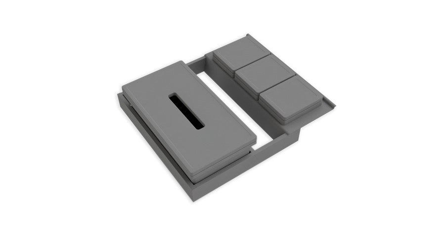 Tomemos como referencia un mueble de baño suspendido de 2 cajones. Se deben utilizar 2 tipos de cajones, el superior que es el que, en principio, albergará los objetos de uso diario y que, en general, deberá adaptarse al sifón que se utilice en el grifo; y el inferior que, ya libre de dicho impedimento, ofrece espacios más amplios ideales para albergar objetos de mayor tamaño como toallas, secadores, etc.