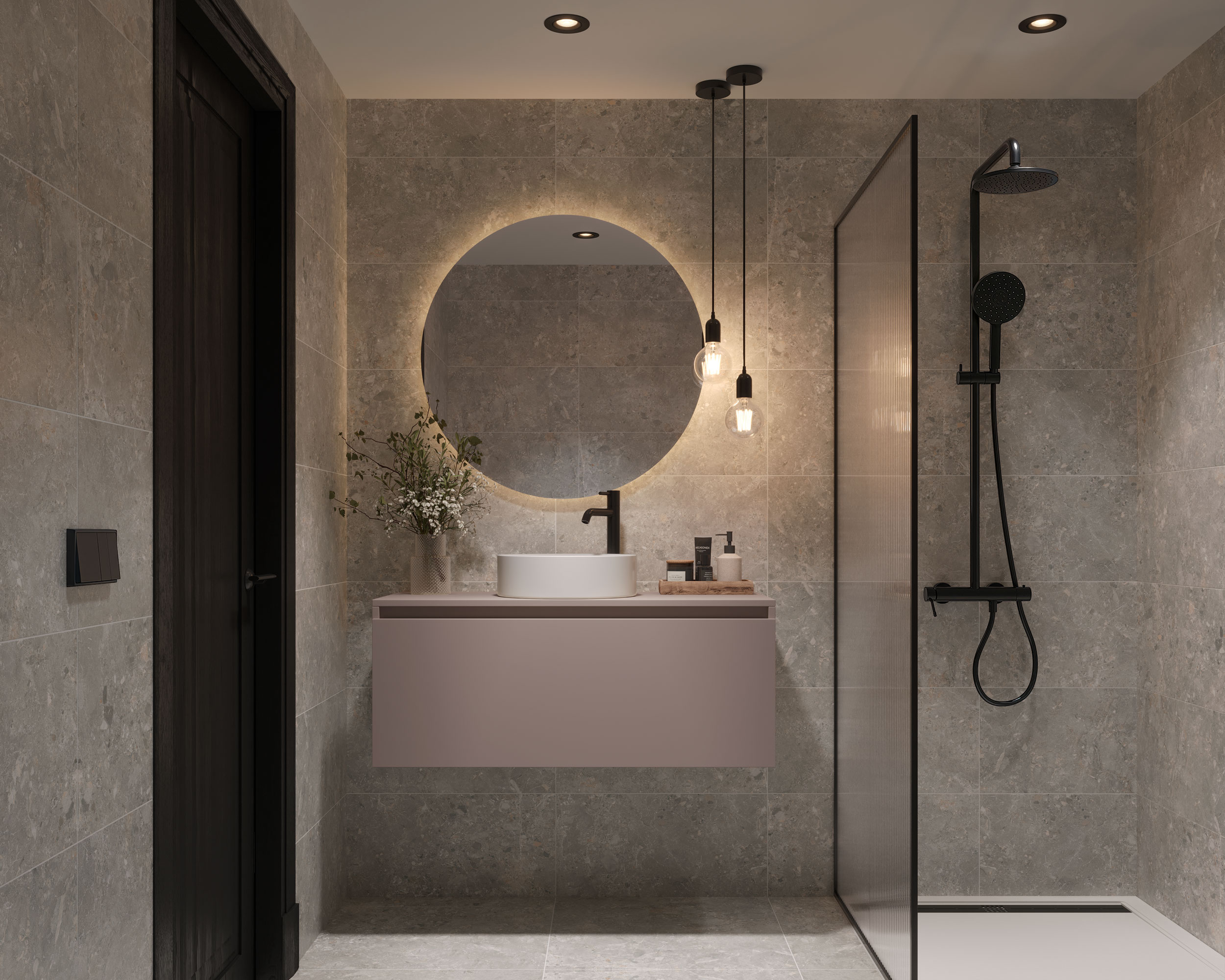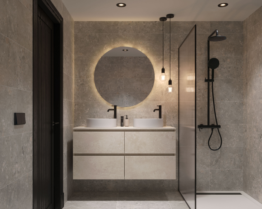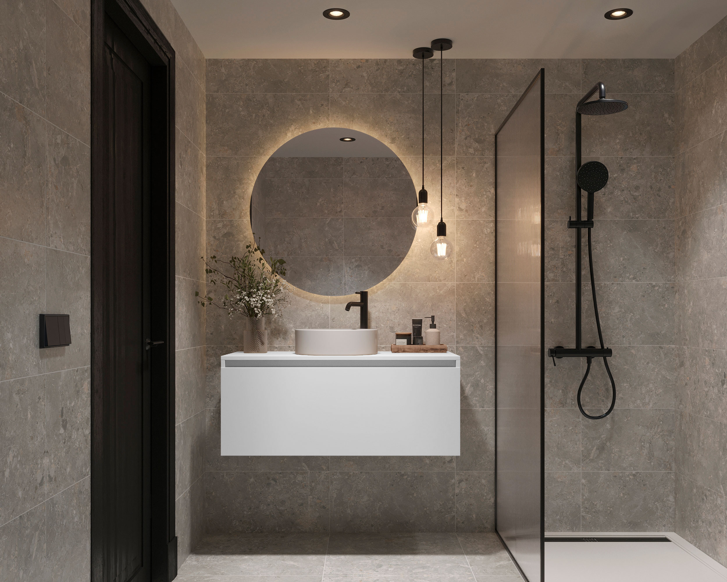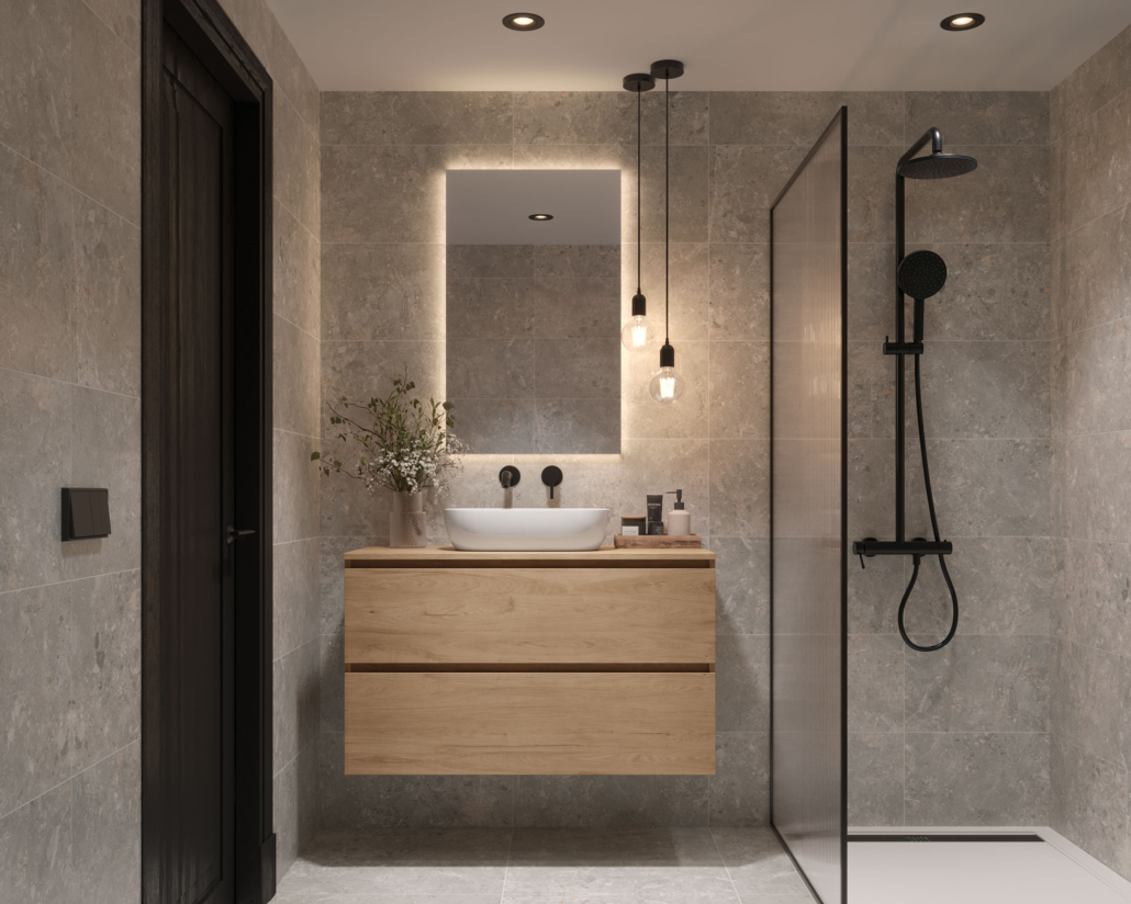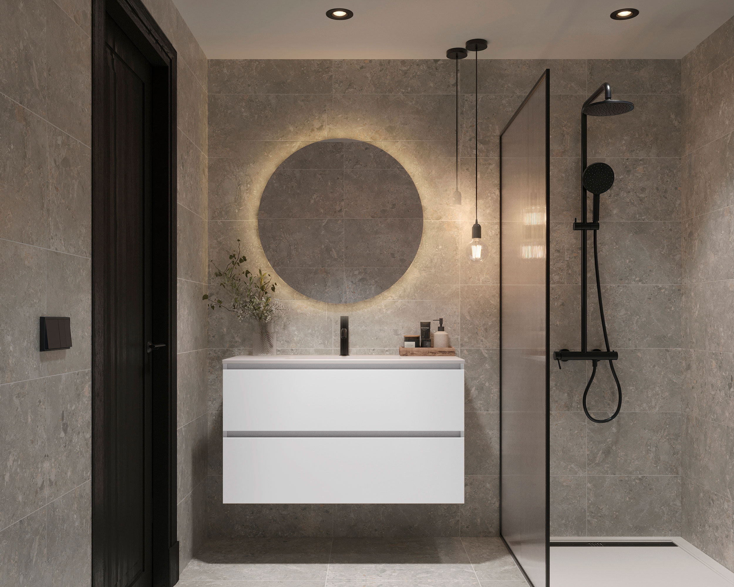 Soluciones de muebles de baño paquetizadas de propuestas de los diferentes diseños de mobiliario de baño para promociones inmobiliarias.
