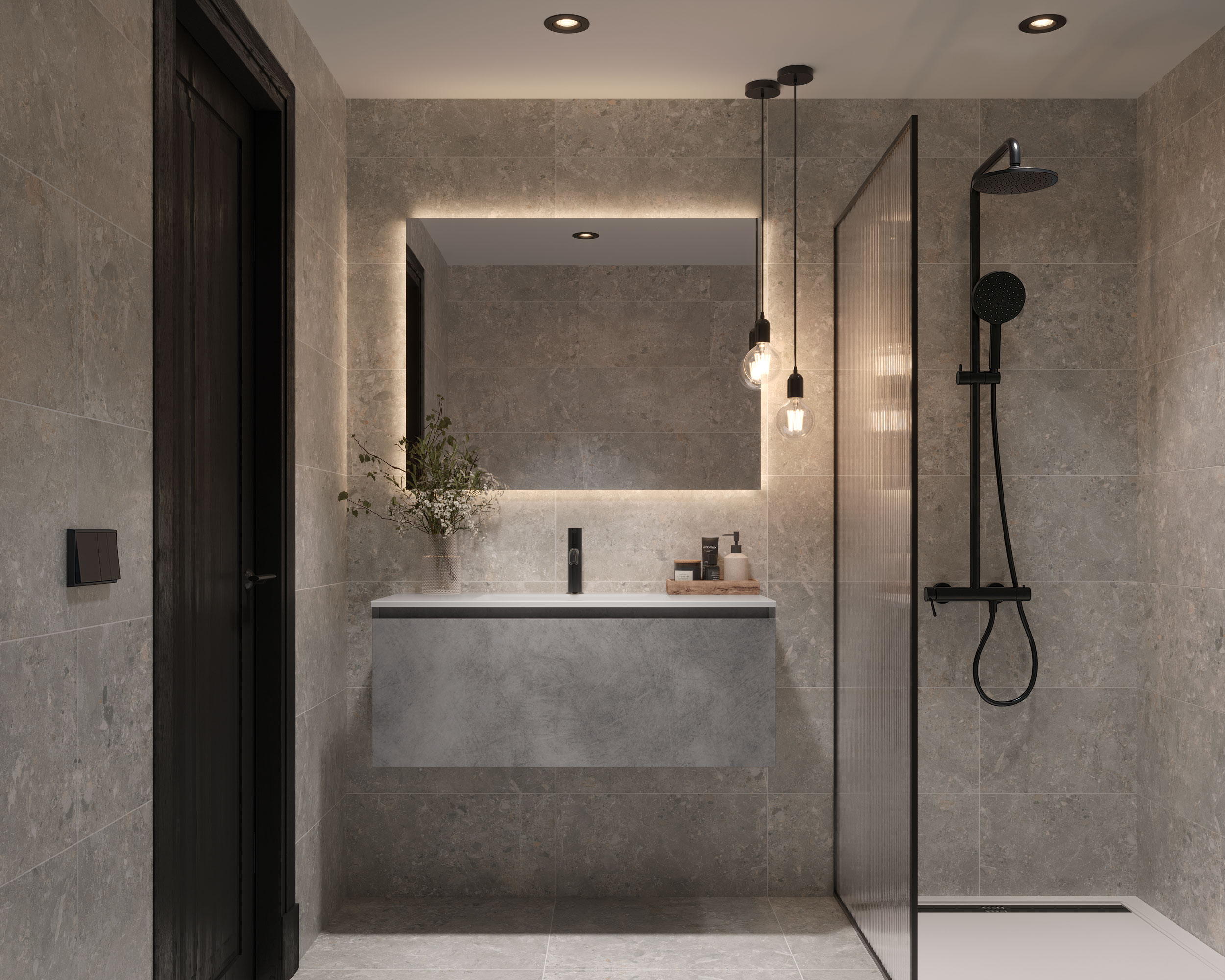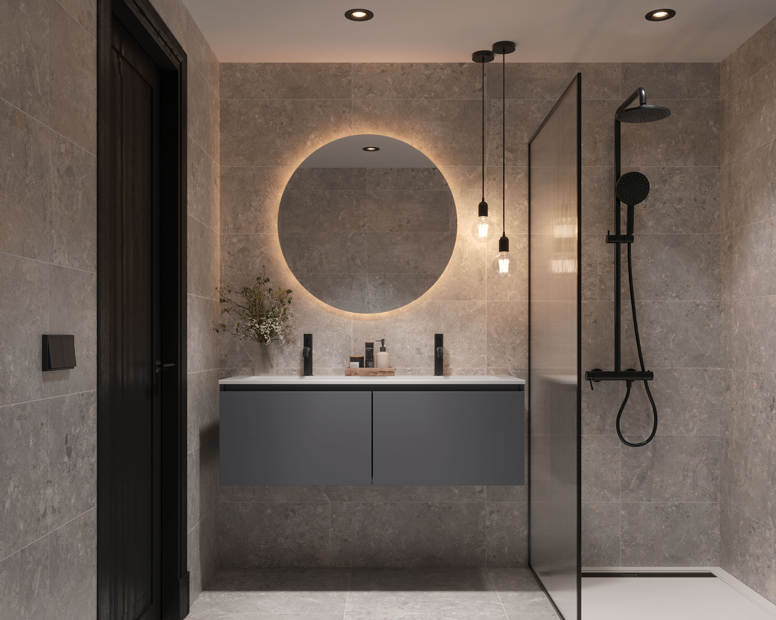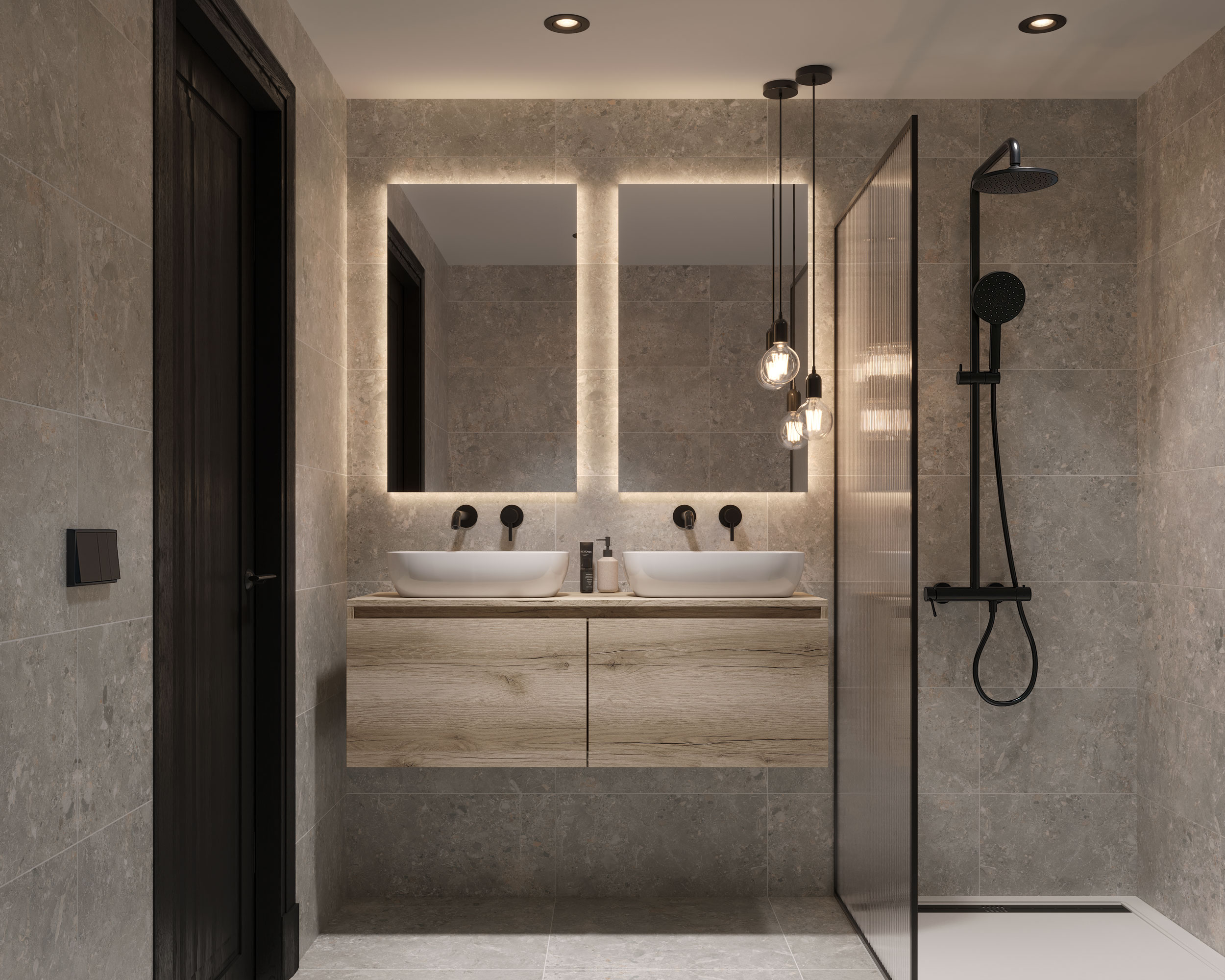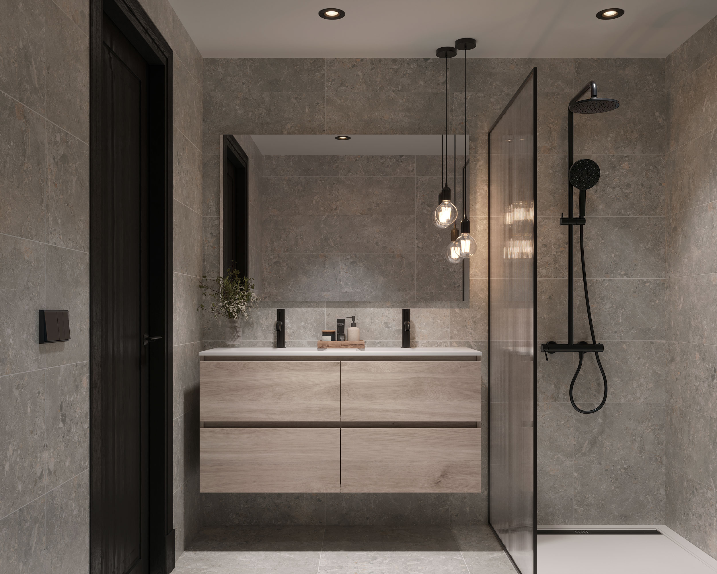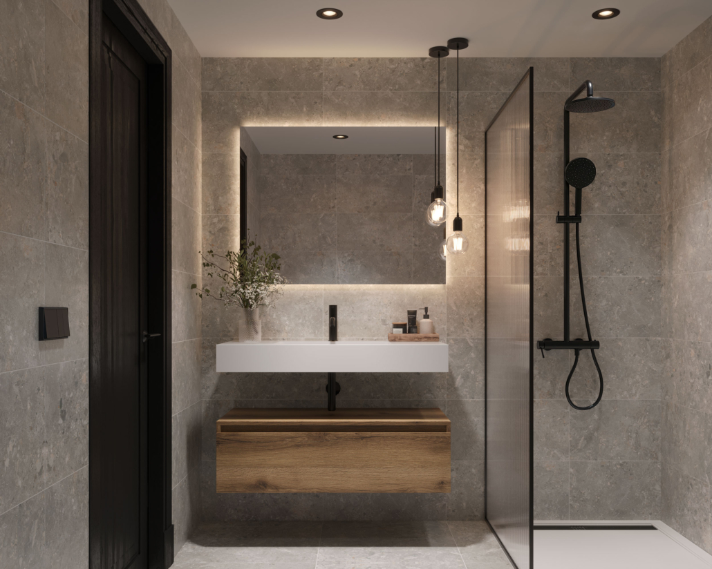Soluciones de muebles de baño paquetizadas de propuestas de los diferentes diseños de mobiliario de baño para promociones inmobiliarias.