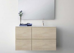 Posibilidad de personalizar en medidas, composición del conjunto (cajones con huecos vistos, puertas verticales, abatibles…) lavabos especiales, materiales laminados, maderas, naturales, más de 30 colores. VER MÁS