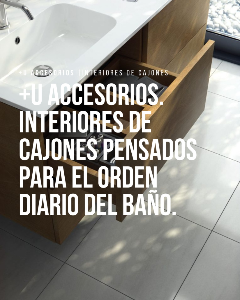 Los interiores de cajones de Unibaño te ayudan a maximizar cada centímetro del mueble. Organiza tus productos — paños, cosméticos, cepillos — con soluciones personalizadas que se adaptan a tus necesidades y tus hábitos diarios.