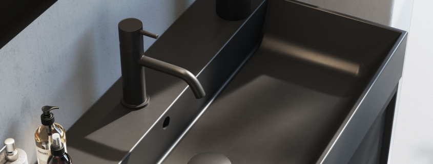 El mundo del baño sigue viviendo su propia revolución. ¿Qué duda cabe? No sólo la concepción del espacio, el sentido del mismo, y la irrupción de la tecnología; los nuevos materiales ha permitido crear muebles de ensueño que alcanzan su máxima al combinarse con piezas sorprendentes que se fusionan con el mismo. Es el caso de esta encimera M20 en negro mate que, junto cala grifería +U también en negro, conforman una solución distinguida y elegante.