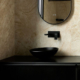 En Hogar Romanilla, el baño se entiende como un lugar de desconexión. El proyecto cuida cada detalle para que la experiencia sea cómoda y estética a la vez. El mueble U4 de Unibaño, en acabado glass negro, marca el carácter del espacio: un diseño rotundo, sofisticado y con gran capacidad de almacenaje. Su presencia no solo resuelve lo práctico, sino que eleva la atmósfera del baño a un nivel superior. Un ejemplo de cómo el interiorismo puede transformar lo cotidiano en una experiencia de bienestar.