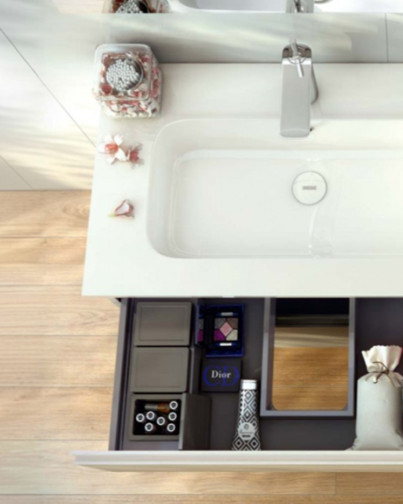 os interiores de cajones bien pensados transforman tu mueble de baño de un lugar de almacenamiento en un espacio eficiente y agradable. Organización que se siente al usar el baño cada día.