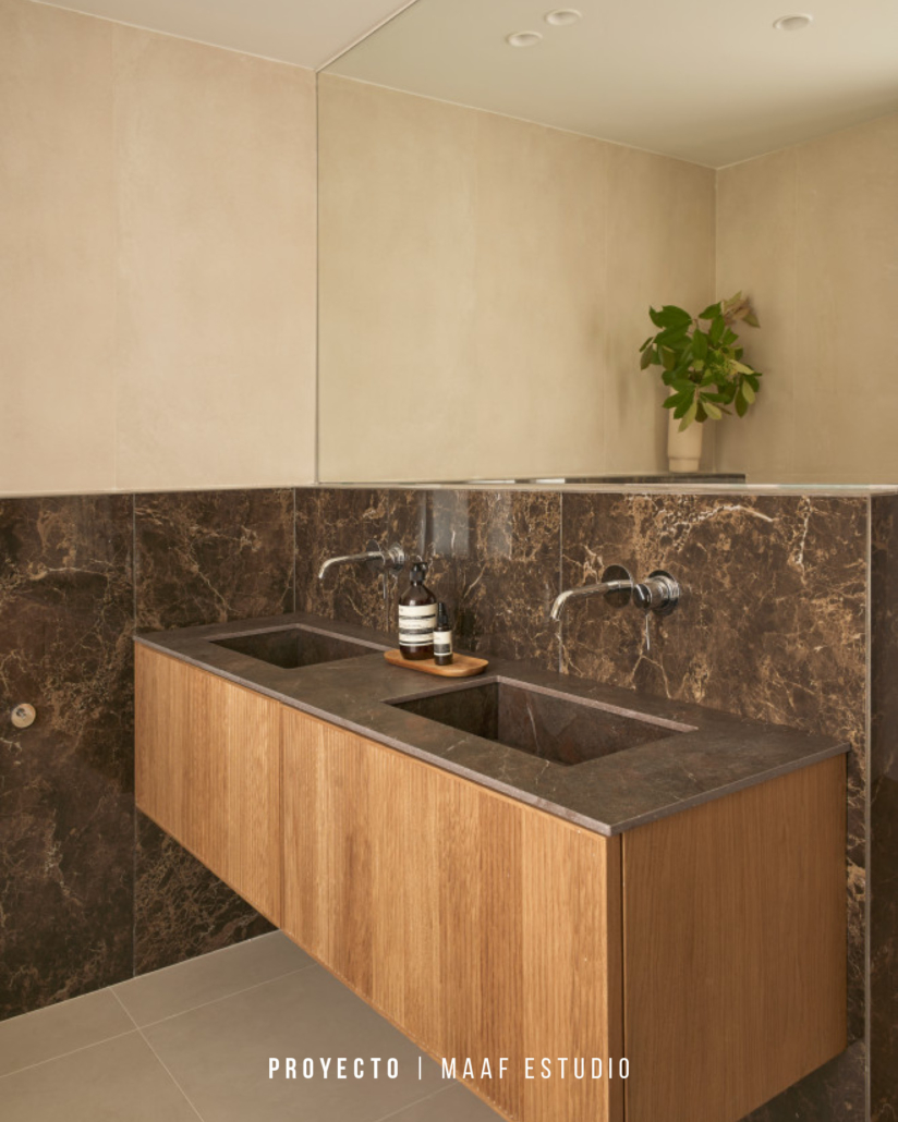 el cliente aún no estaba definido, lo que permitió a MAAF Estudio proponer soluciones sin condicionantes estrictos y explorar formas y materiales con mayor flexibilidad. Esta libertad se traduce en baños donde cada solución de Unibaño ha sido pensada a medida, aportando personalidad y sentido de uso a cada estancia del hogar.