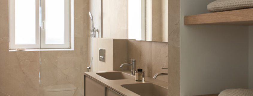 y la posibilidad de personalización fueron claves para elegir Unibaño. La colección U5 permite seleccionar tamaño, acabado, material, diseño, tirador o encimera, adaptándose así a las dimensiones y necesidades de cada baño del proyecto. Esta flexibilidad, junto con la calidad de ejecución, convierte cada pieza en una solución práctica y diferenciadora dentro de una vivienda con una identidad tan definida.