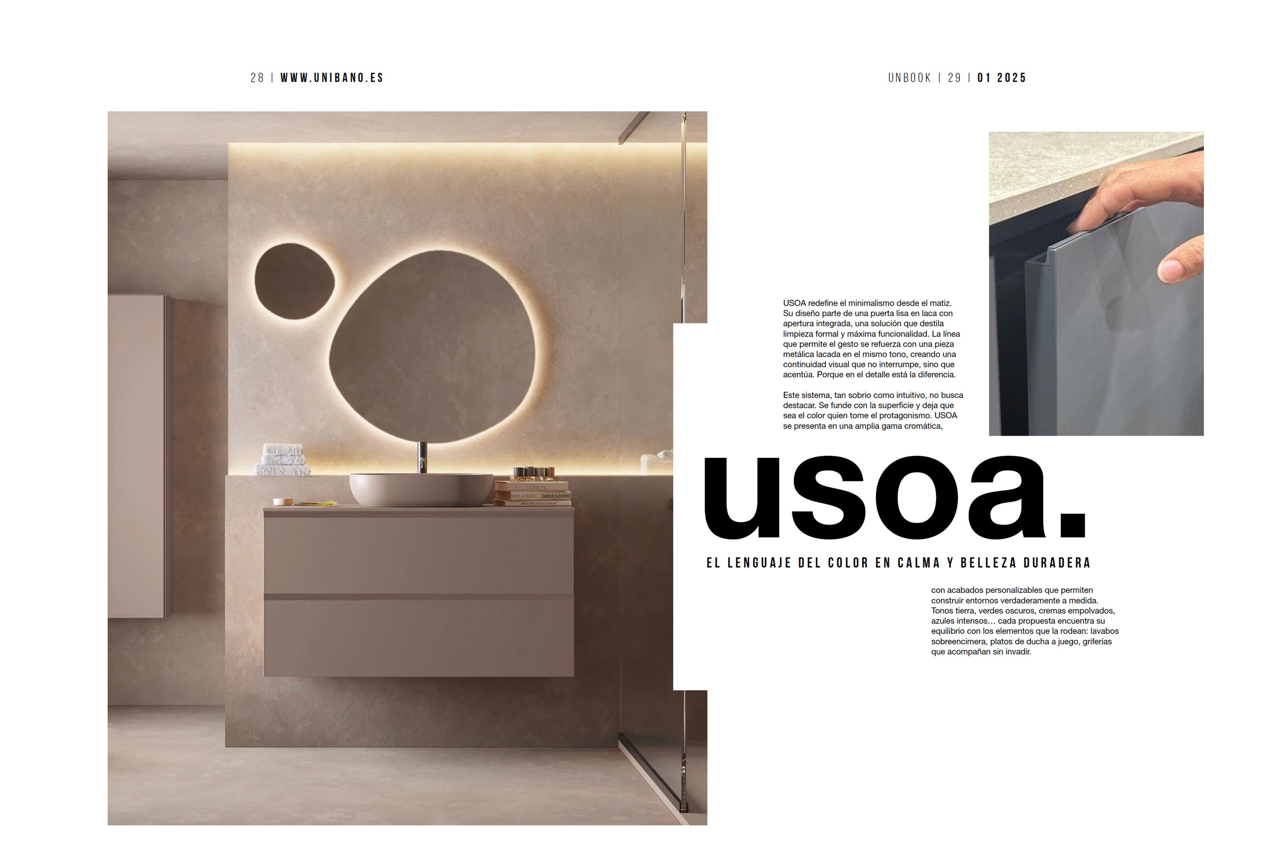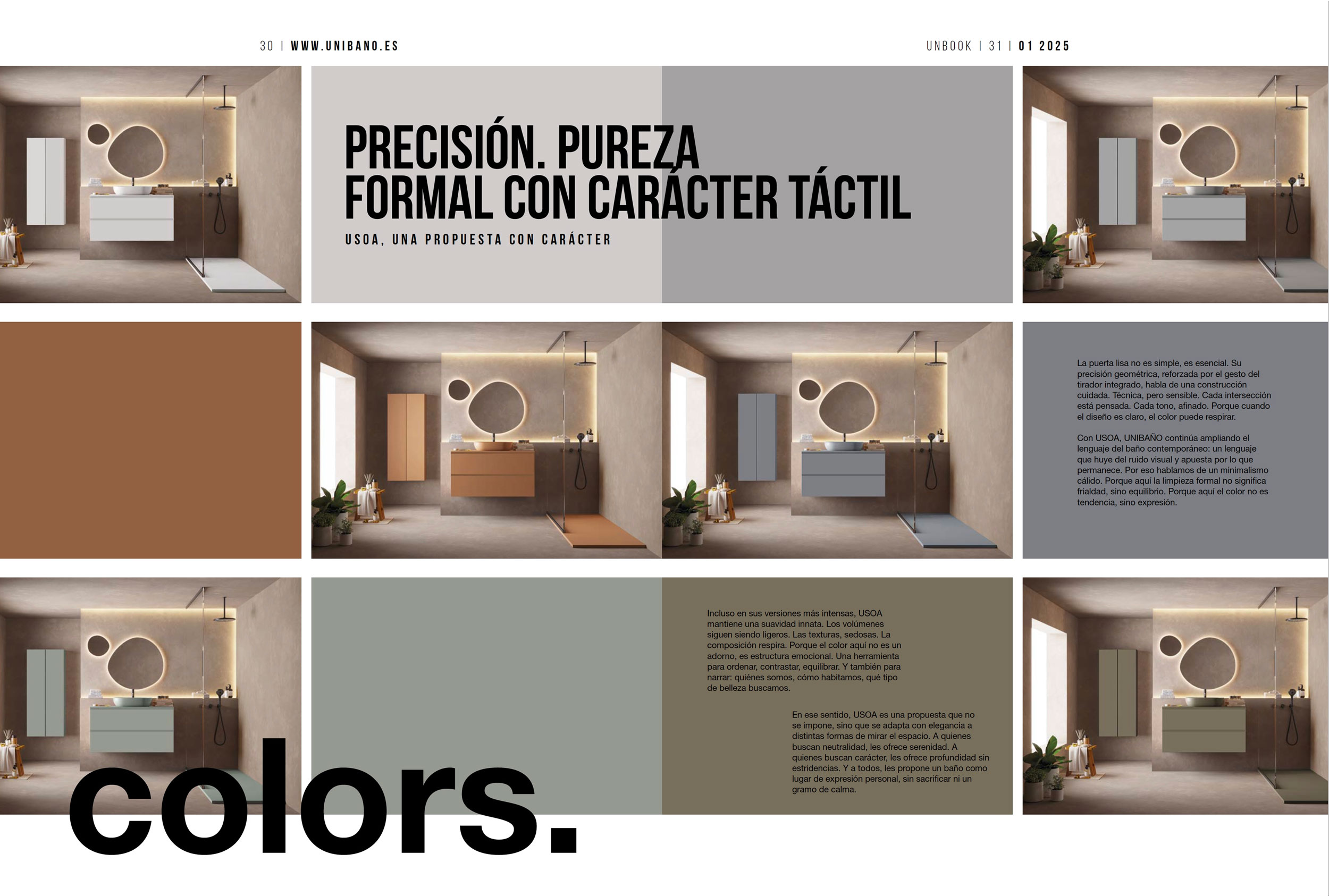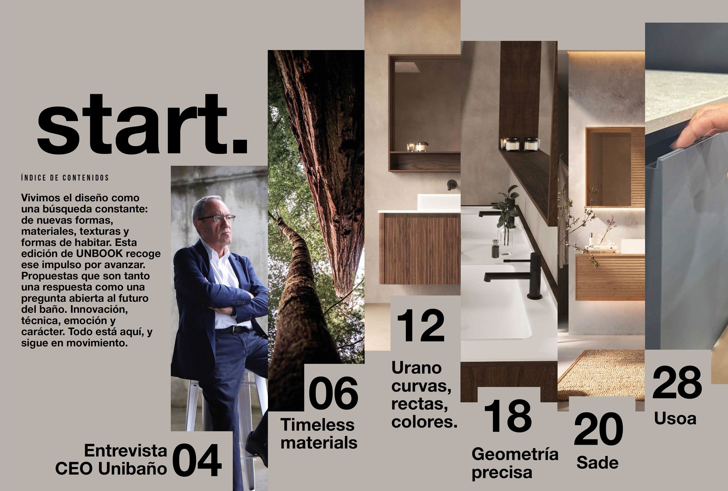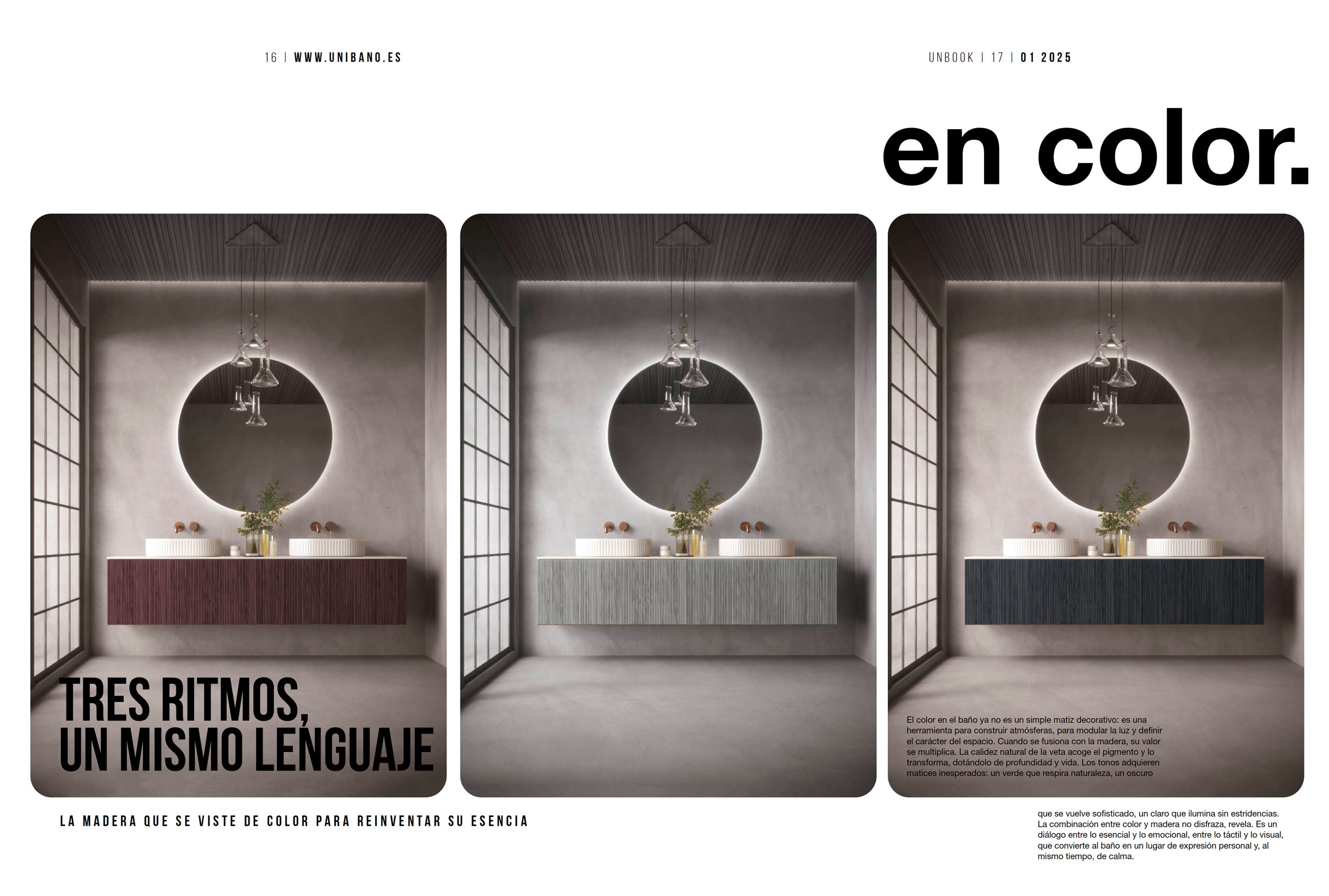 UNBOOK es el nuevo magazine de Unibaño, un espacio donde la innovación y el diseño se encuentran para inspirar nuevas formas de entender el baño. En cada página descubrirás la esencia de nuestro compromiso: ofrecer soluciones globales e ilimitadas (unlimited), fruto de una búsqueda constante de materiales, acabados y tendencias que nos permiten personalizar cada detalle. UNBOOK nace para mostrar cómo en Unibaño transformamos la funcionalidad en experiencia, y cada proyecto en una expresión única de estilo, bienestar y personalidad.